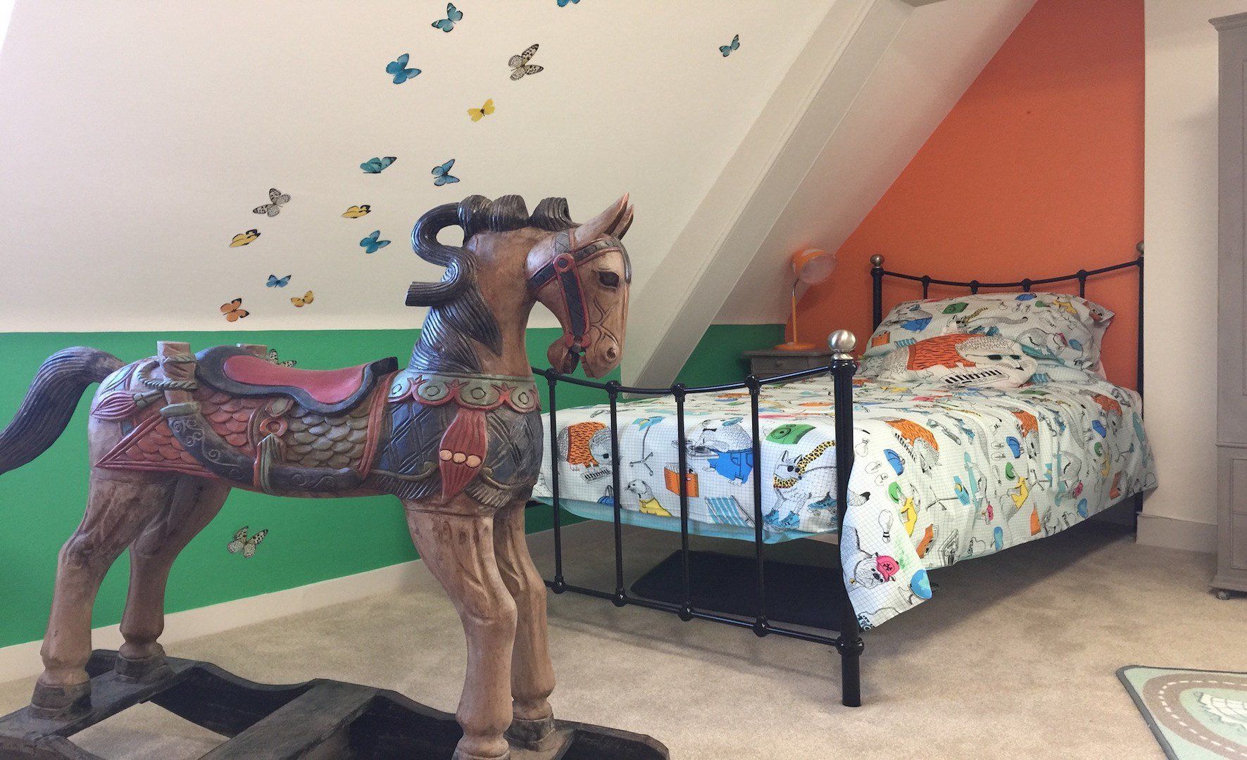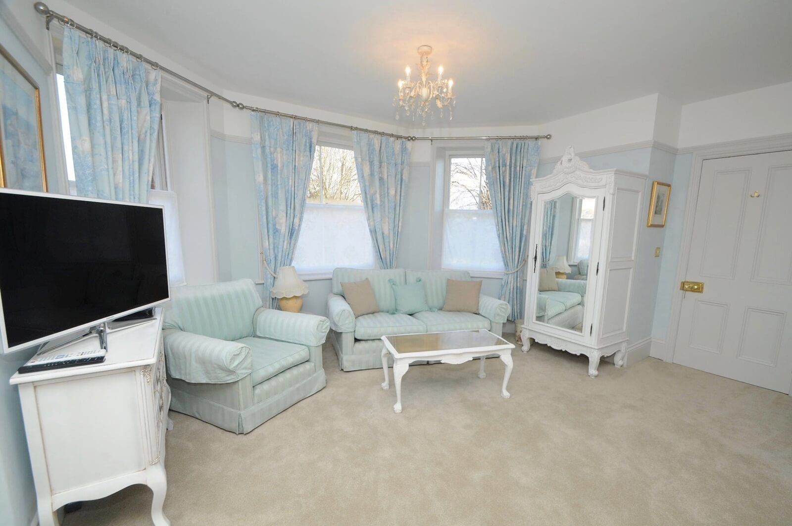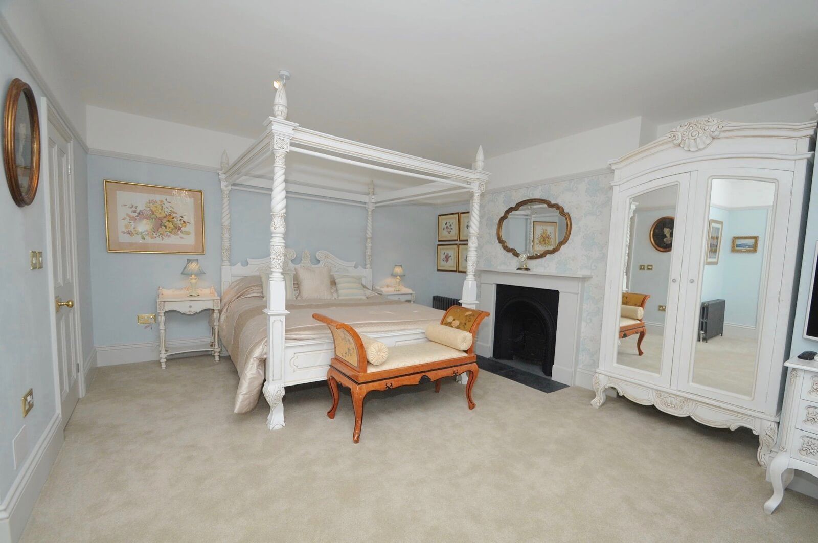 The property has a large, bay window, lounge with 60” TV (plus Virgin media) and an extensive kitchen diner that runs across the whole width of the house, with a feature Range double oven with 6 burner gas hob. The master bedroom has a super king-size four-poster bed and its own en-suite and seating area, within the large bay window.