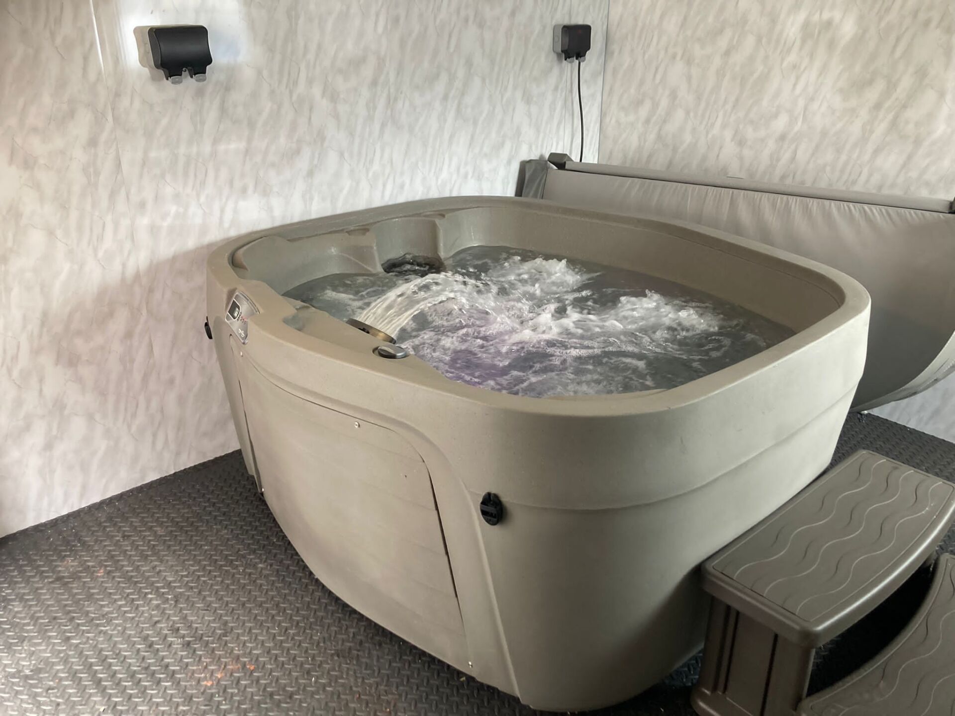 An indoor pop up rigid side hot tub is available to hire in the main section of the house and also a permanent 4 - 6 person hot tub in the Corner Wing mini spa for £325 for a weekend or £400 for the week.