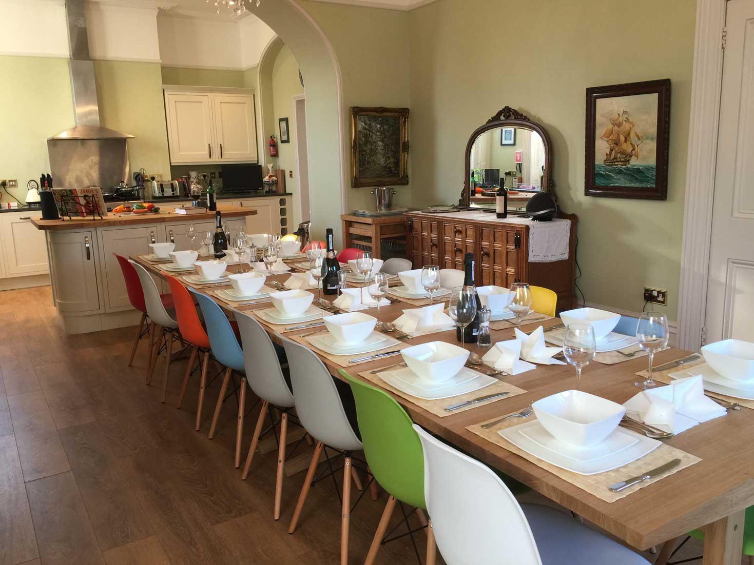 Filled with character and class, this house offers adaptable and stylish accommodation.With a downstairs bedroom and wetroom for the less mobile, it is great for family gatherings providing a versatile spacious living space for all ages. With the wonderful large kitchen and dining table it is an ideal place for entertaining, and if you don't want to cook we can organise a private chef for you.