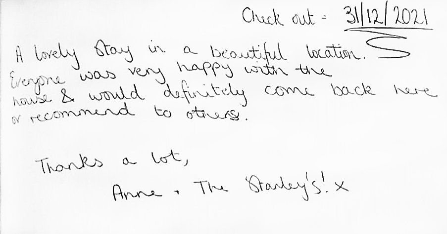 A Welcome Pack is provided on arrival, including a bottle of Prosecco, Spring Water, locally produced Tutti Fruity Jam, Biscuits, and Homemade Fudge. Milk, Tea & Coffee.