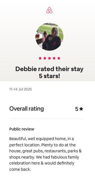 The property has a large, bay window, lounge with 60” TV (plus Virgin media) and an extensive kitchen diner that runs across the whole width of the house, with a feature Range double oven with 6 burner gas hob. The master bedroom has a super king-size four-poster bed and its own en-suite and seating area, within the large bay window.